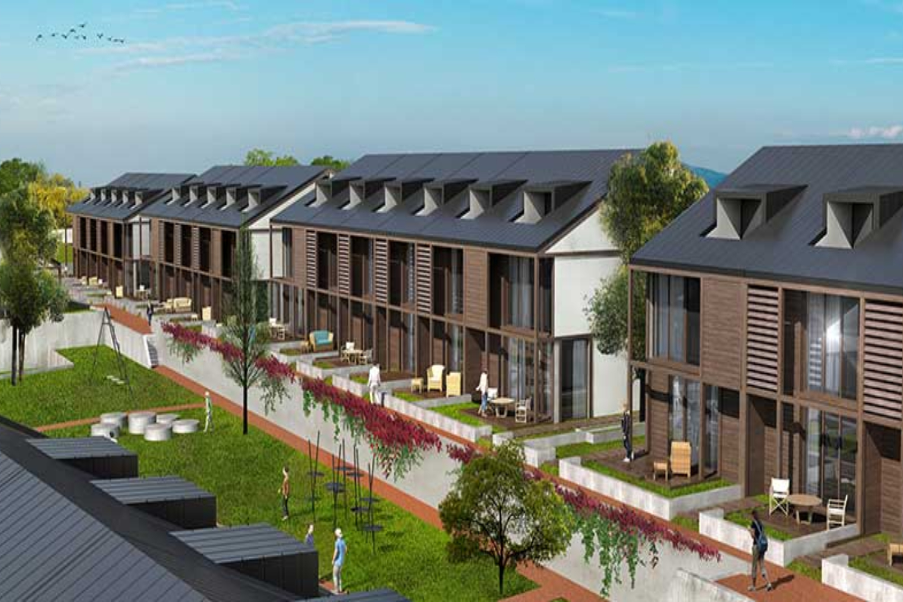 Project Description: Steel was used as the construction material in the housing of the Koopera Zekeriyaköy project, which consists of 45 detached houses. . Villa type apartments are divided into two as 4+1 and 5+1. The areas of the villas vary between 204 square meters and 285 square meters.